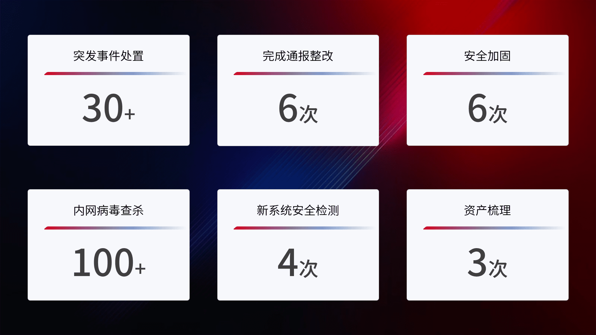 网络安全加固与风险管理:通过技术加固手段,,如加强区域隔离,,缩减攻击内网横向移动的范围;优化现有网络安全管理制度,,,,降低网络威胁暴露面,,,减少被黑客攻击的可能性。。