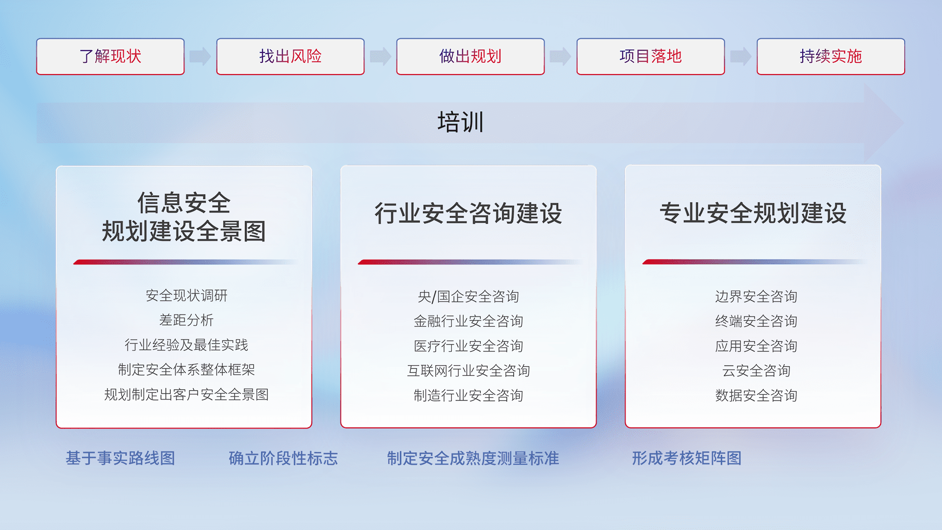 针对客户行业特性,,将宏观的安全战略和需求,,,,通过专业的交付服务,,,,实现项目落地,,,,为客户提供标准规范的集成交付服务。。。